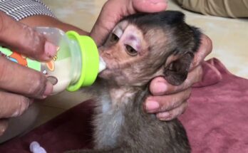 Poor Baby Monkey Binya hurt on body Read More
