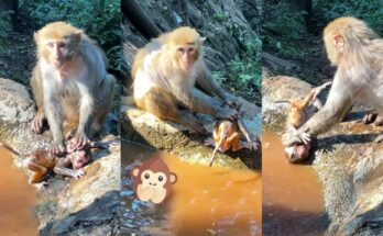A heartbreaking scene unfolds in the wild as an innocent orphan baby monkey faces a terrifying moment of cruelty. The title “Bad Monkey Killing Orphan Baby Monkey in the Pool” …