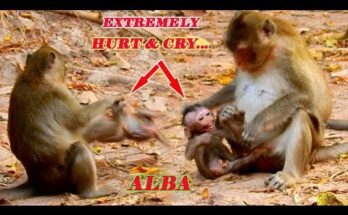 The heartbreaking scene unfolds in the forest as Mother Anna, usually known for her calm nature, suddenly turns aggressive toward her own baby, little Ariana. The innocent baby monkey, full of curiosity and affection, simply tries to get closer to her mother, reaching out with tiny hands for comfort and warmth. However, instead of love and gentle care, Ariana faces painful rejection. Mother Anna growls sharply, her eyes filled with irritation, and without hesitation, she bites the helpless baby. Ariana’s soft cries echo through the trees, a desperate call for mercy that breaks the heart of anyone who witnesses it.